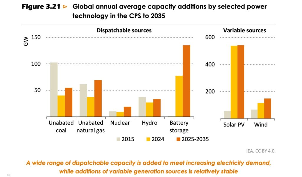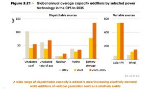 Allerdings fügt die IEA in ihrem Bericht hinzu, dass unter ihrem „Current Policies Scenario” (CPS), das bereits bestehende Richtlinien und Vorschriften berücksichtigt, der weltweite jährliche Zuwachs an Photovoltaik-Anlagen vor allem aufgrund zunehmender Integrationsherausforderungen auf dem Niveau von 2024 stagnieren wird. Erneuerbare Energien, angeführt von der Photovoltaik, werden laut CPS-Szenario voraussichtlich von einem Drittel der weltweiten Stromerzeugung im Jahr 2024 auf knapp unter die Hälfte im Jahr 2035 ansteigen, während Kohle in den nächsten zehn Jahren die größte Einzelquelle der weltweiten Stromerzeugung bleiben wird.