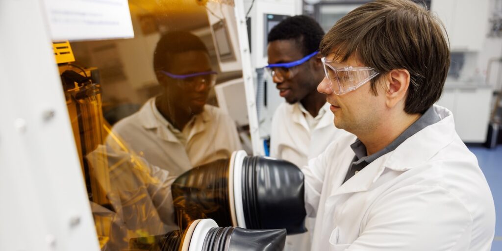 HZB-Forscher Artem Musiienko (rechts im Bild) sieht in Zinn-Perowskiten einen Weg zur Entwicklung stabiler und effizienter Solarzellen.